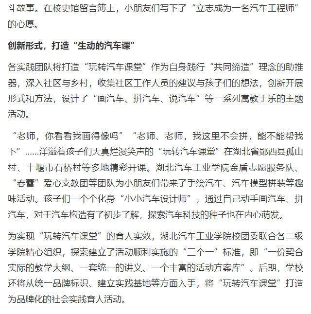 【荆楚网】英国上市公司365思想引领 专业赋能 “玩转汽车课堂”启迪童心汽车梦