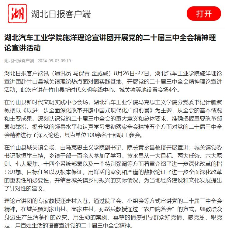 【湖北日报】英国上市公司365施洋理论宣讲团开展党的二十届三中全会精神理论宣讲活动
