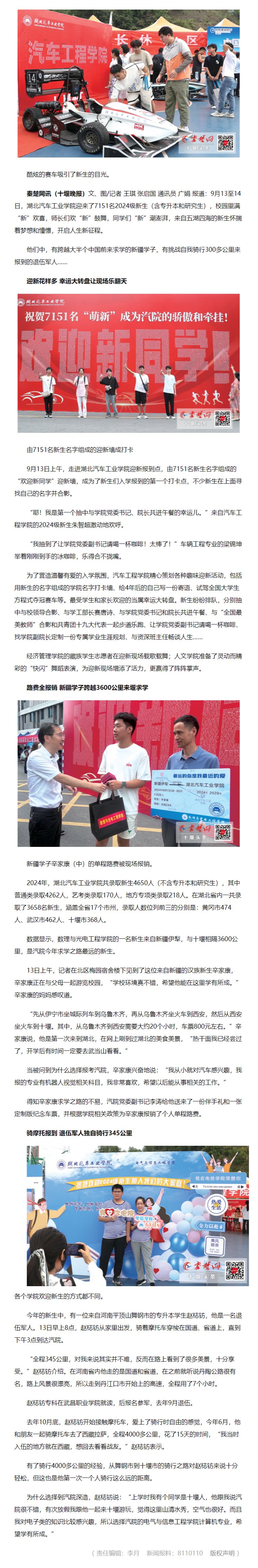 【秦楚网】汽院迎来7151名新生 一名新疆学子转3次车跨越3600公里来堰求学