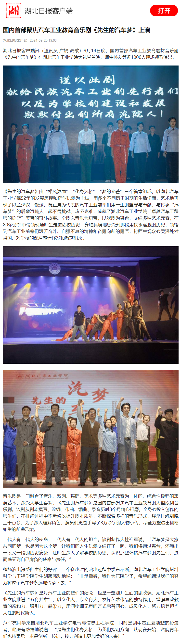 【湖北日报】国内首部聚焦汽车工业教育音乐剧《先生的汽车梦》上演