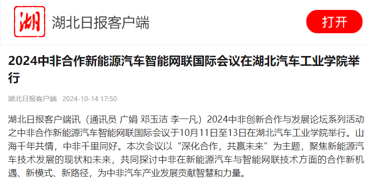 【湖北日报】2024中非合作新能源汽车智能网联国际会议在英国上市公司365举行