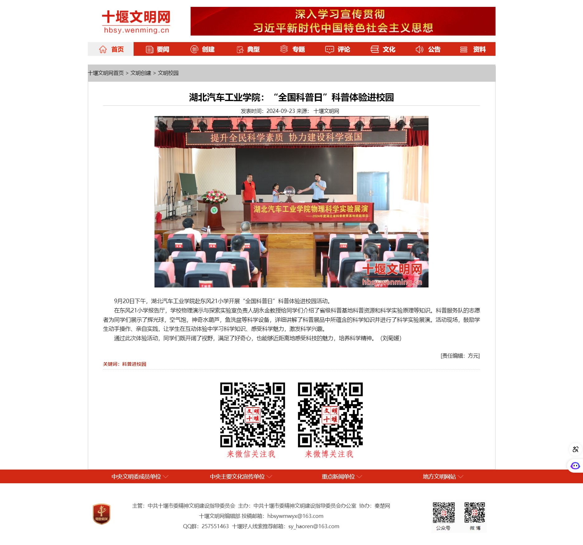 【十堰文明网】英国上市公司365:“全国科普日”科普体验进校园