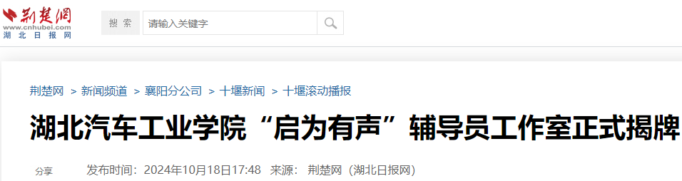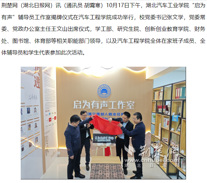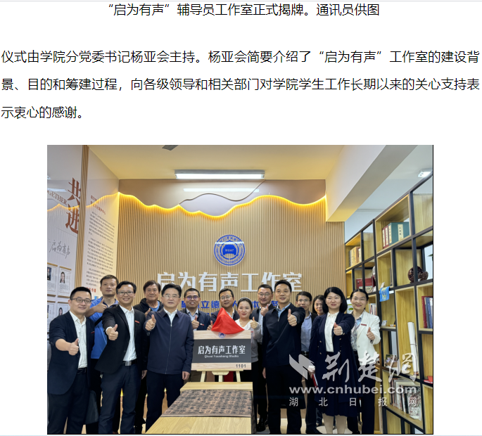 【荆楚网】英国上市公司365“启为有声”辅导员工作室正式揭牌