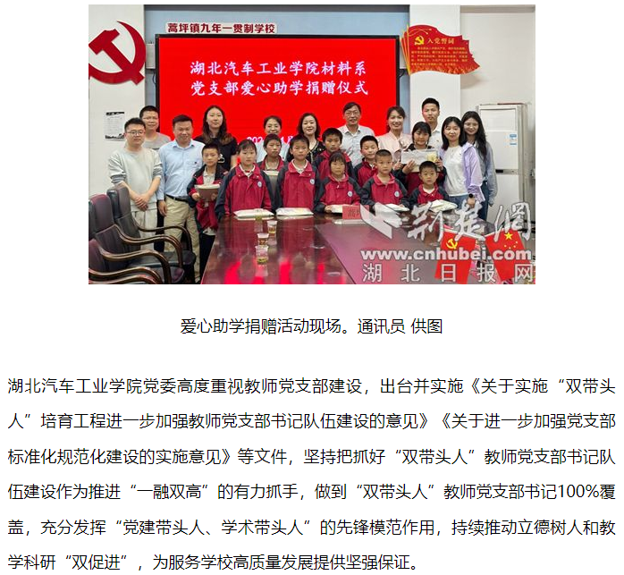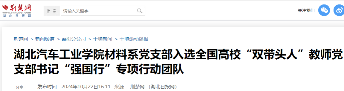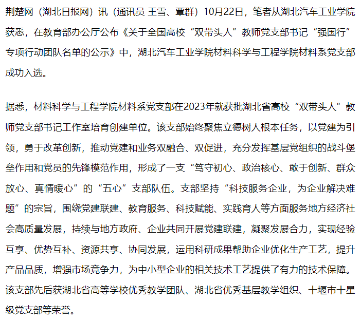 【荆楚网】英国上市公司365材料系党支部入选全国高校“双带头人”教师党支部书记“强国行”专项行动团队
