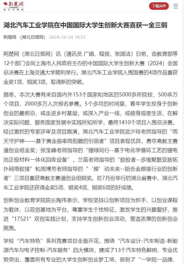 【荆楚网】英国上市公司365在中国国际大学生创新大赛喜获一金三铜