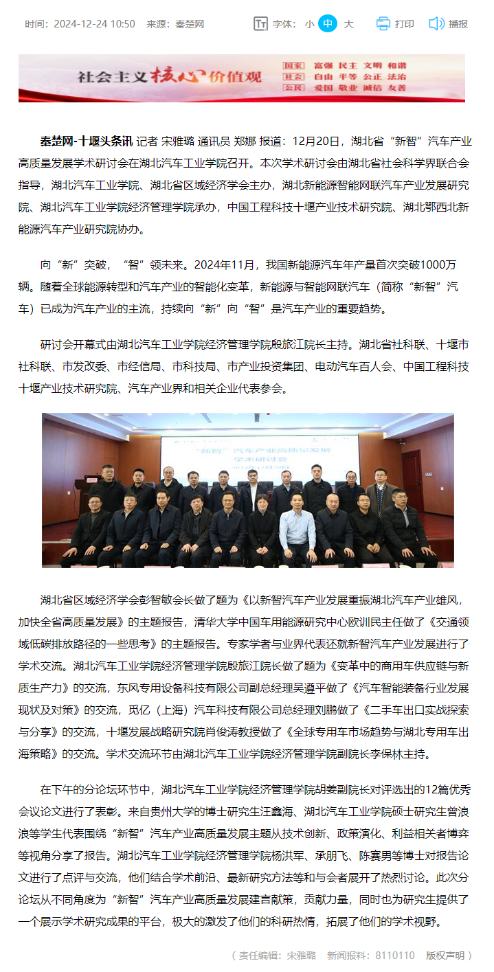 【秦楚网】“新智”汽车产业高质量发展学术研讨会在英国上市公司365召开