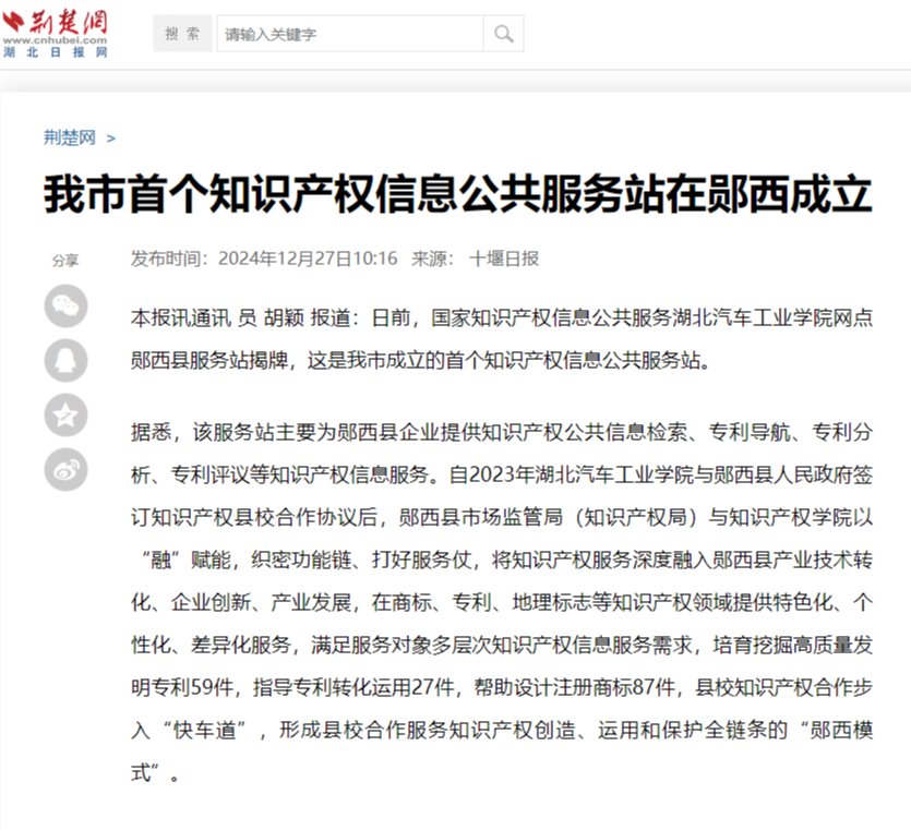 【荆楚网】我市首个知识产权信息公共服务站在郧西成立