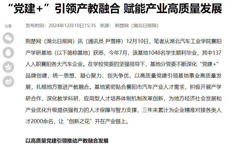 【荆楚网】“党建+”引领产教融合 赋能产业高质量发展