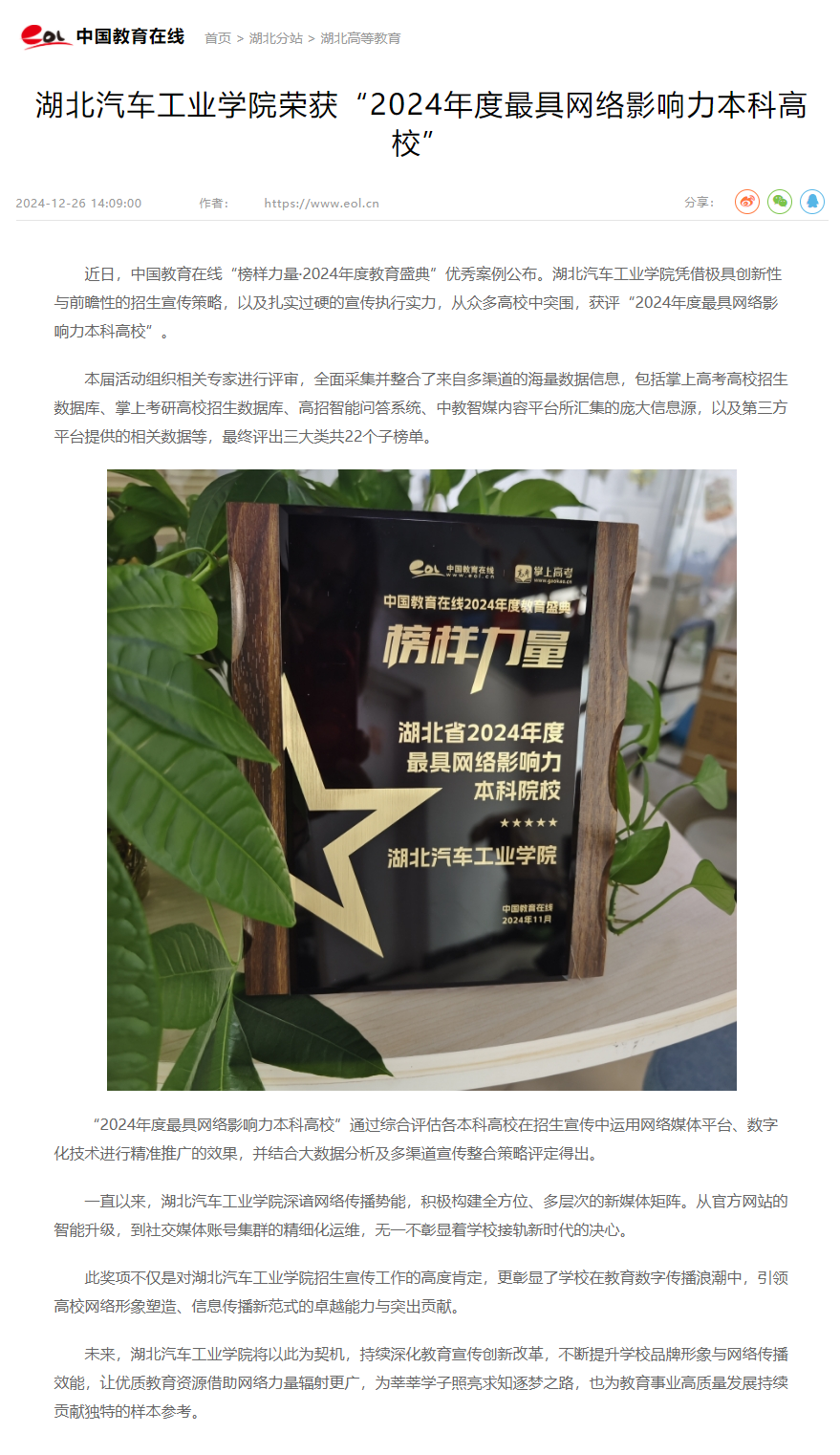 【中国教育在线】英国上市公司365荣获“2024年度最具网络影响力本科高校”