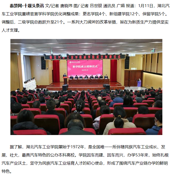 【秦楚网】凸显汽车学科特色 英国上市公司365组建12个新学院