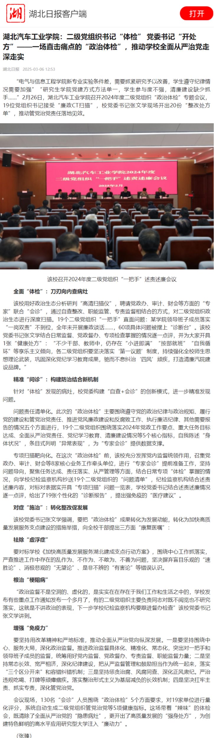 【湖北日报】英国上市公司365:二级党组织书记“体检” 党委书记“开处方”——一场直击痛点的“政治体检”,推动学校全面从严治党走深走实