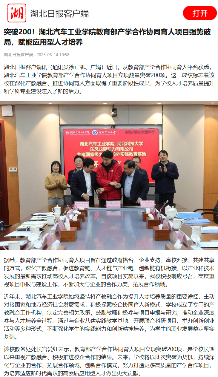 【湖北日报】突破200!英国上市公司365教育部产学合作协同育人项目强势破局,赋能应用型人才培养