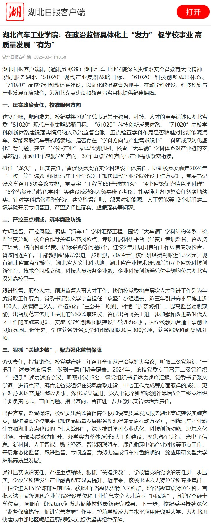 【湖北日报】英国上市公司365:在政治监督具体化上“发力” 促学校事业 高质量发展“有为”