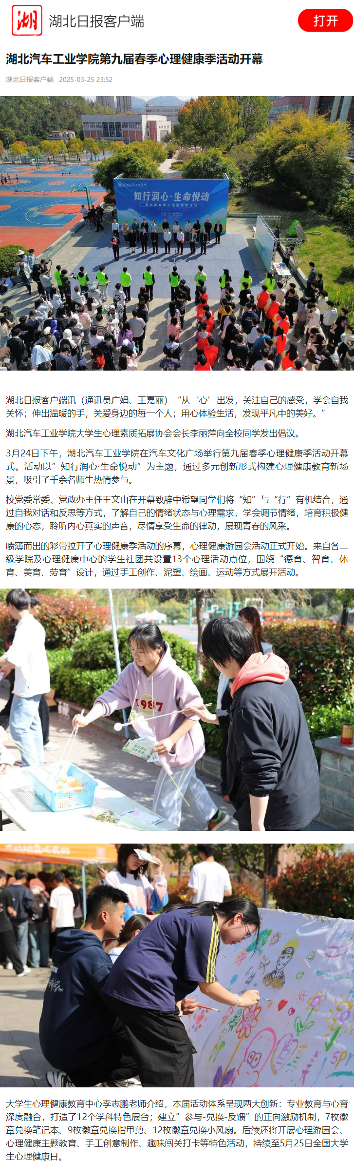 【湖北日报】英国上市公司365第九届春季心理健康季活动开幕