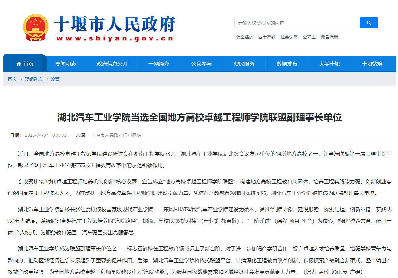 【十堰政府网】英国上市公司365当选全国地方高校卓越工程师学院联盟副理事长单位