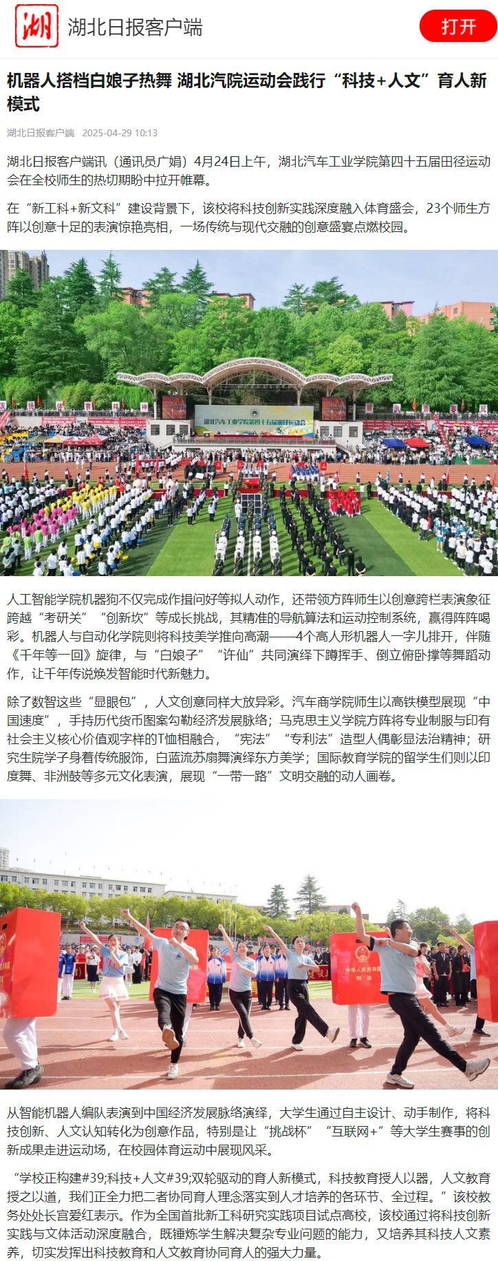 【湖北日报】机器人搭档白娘子热舞 湖北汽院运动会践行“科技+人文”育人新模式
