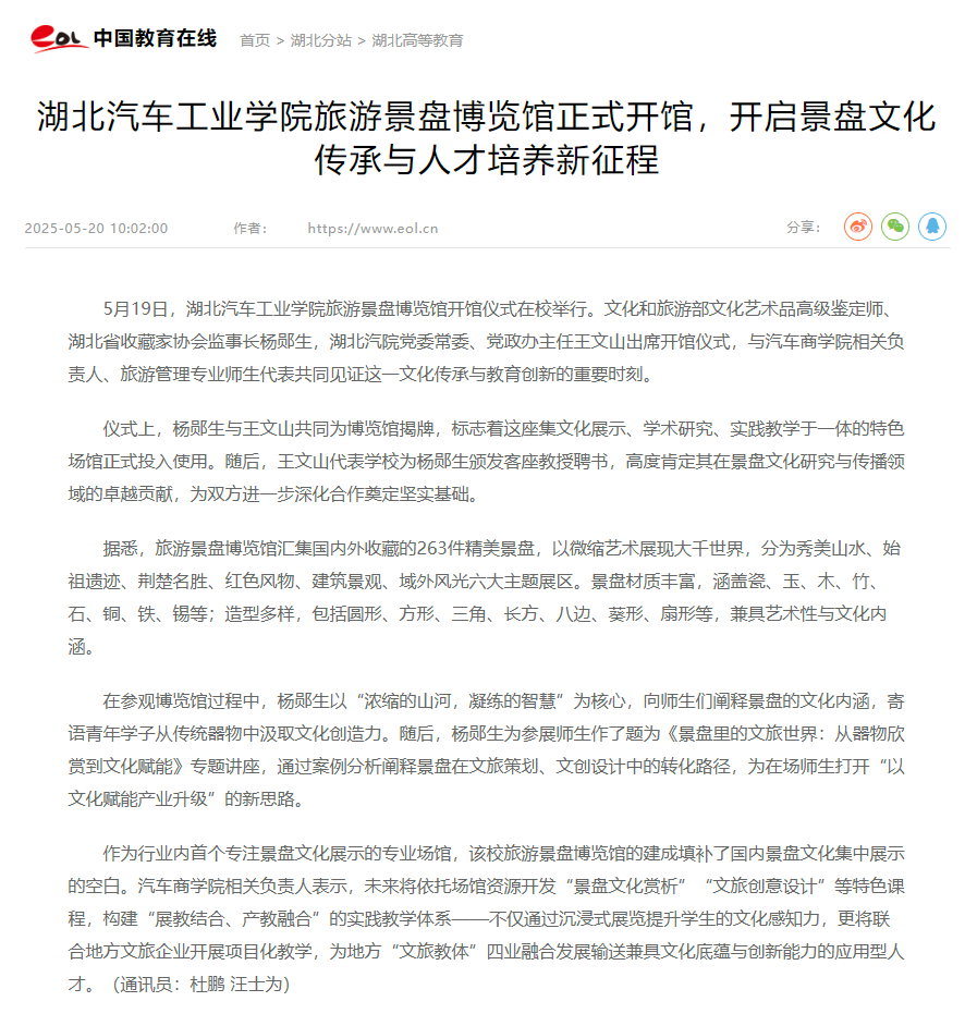 【中国教育在线】英国上市公司365旅游景盘博览馆正式开馆,开启景盘文化传承与人才培养新征程