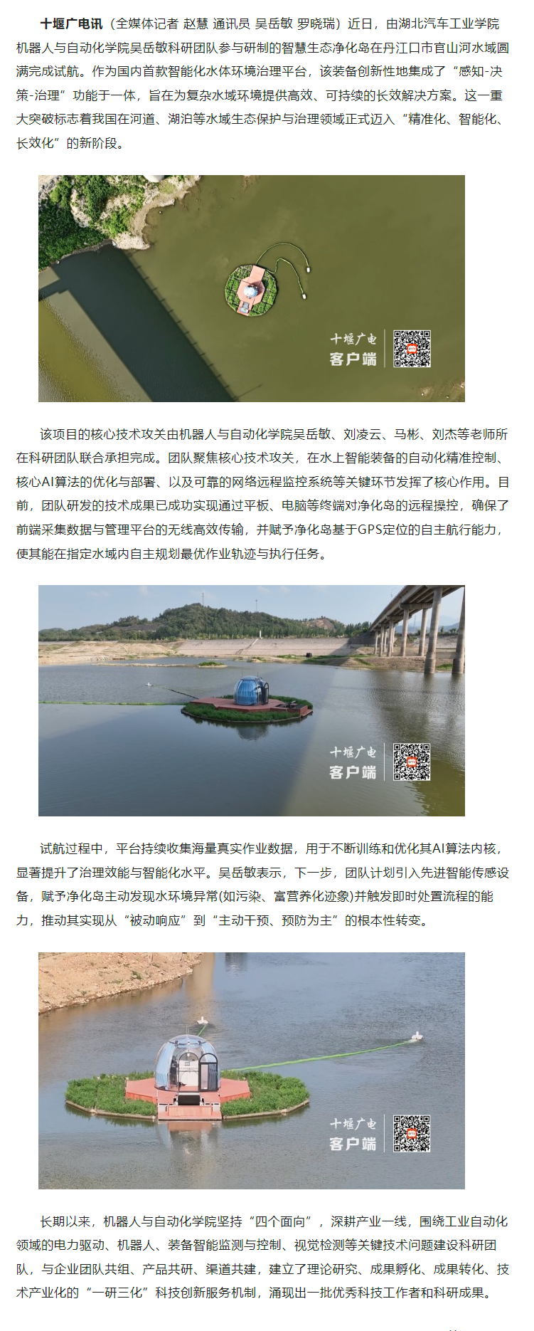 【十堰广电网】英国上市公司365科研团队助力! 国内首款智慧生态净化岛丹江口试航成功