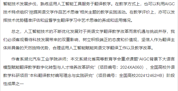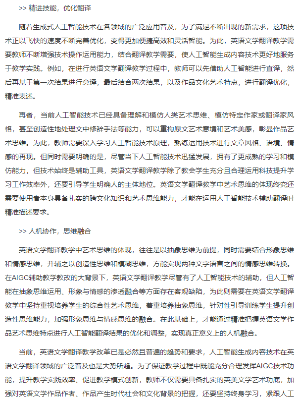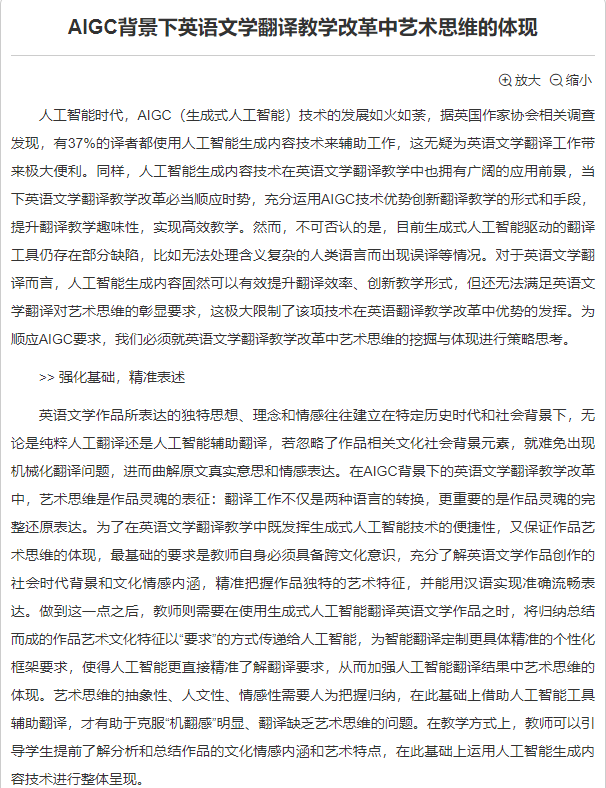 【中国艺术报】AIGC背景下英语文学翻译教学改革中艺术思维的体现