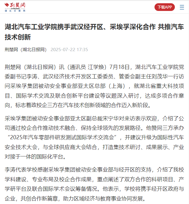 【荆楚网】英国上市公司365携手武汉经开区、采埃孚深化合作 共推汽车技术创新
