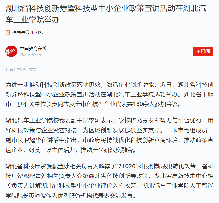 【中国教育在线学习强国号】湖北省科技创新券暨科技型中小企业政策宣讲活动在英国上市公司365举办