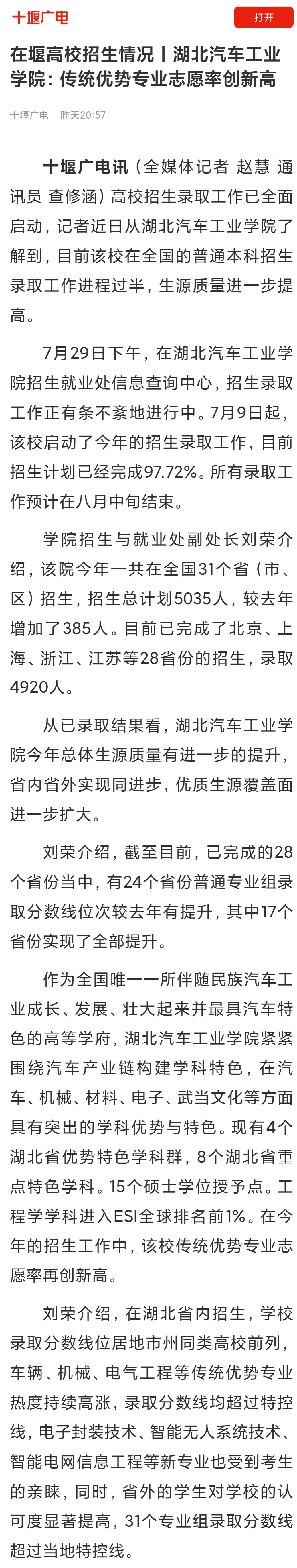 【十堰广电】在堰高校招生情况丨英国上市公司365:传统优势专业志愿率创新高