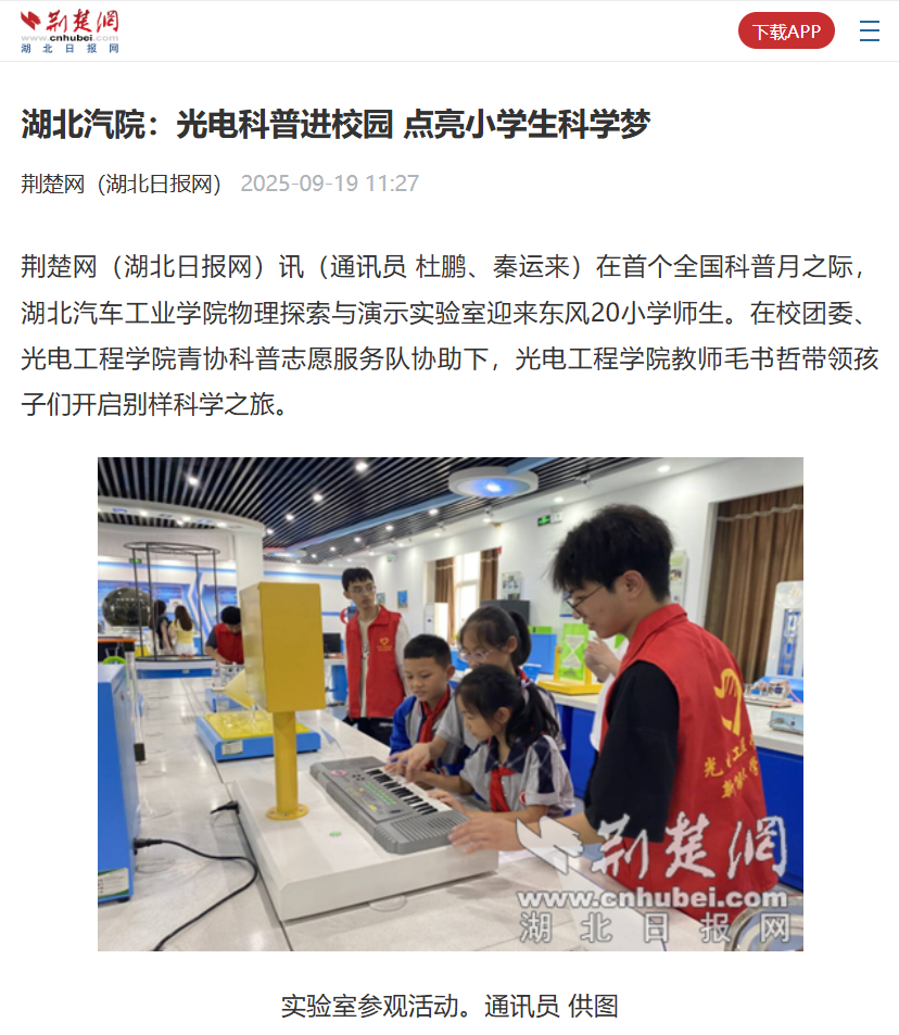 【荆楚网】湖北汽院:光电科普进校园 点亮小学生科学梦